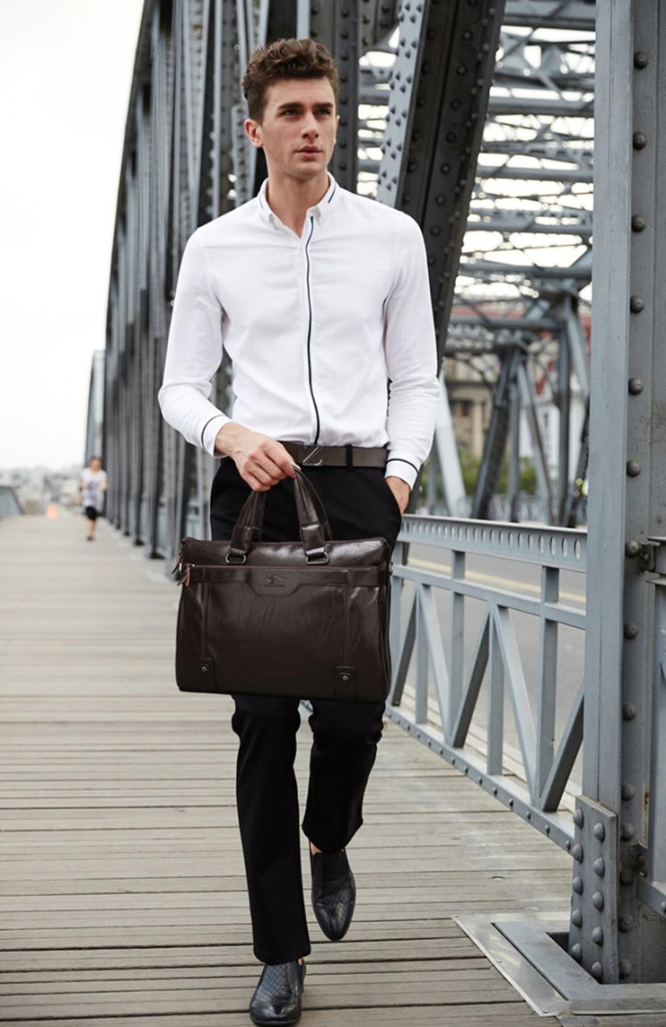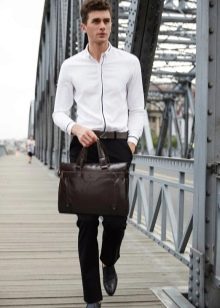 Dieses Accessoire sollte auch das Bild ergänzen. Gut geeignet sind klassische Ledermodelle in Schwarz oder Braun. Wenn Sie oft einen Laptop oder eine große Menge an Dokumenten mit sich führen, wählen Sie die geräumigere Variante. Für diejenigen, die normalerweise nur wenige Gegenstände haben, kann eine kleine Business-Tasche oder Geldbörse in Betracht gezogen werden.