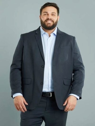 Für einen vollen Mann ist es besser, eine Jacke und eine Hose der gleichen Farbe zu wählen, um die Problemzonen der Figur nicht zu betonen. Sie können einen Anzug in Dunkelgrau kaufen - das ist ein Klassiker. Ein Bild mit Hemd aber ohne Krawatte wirkt entspannter.