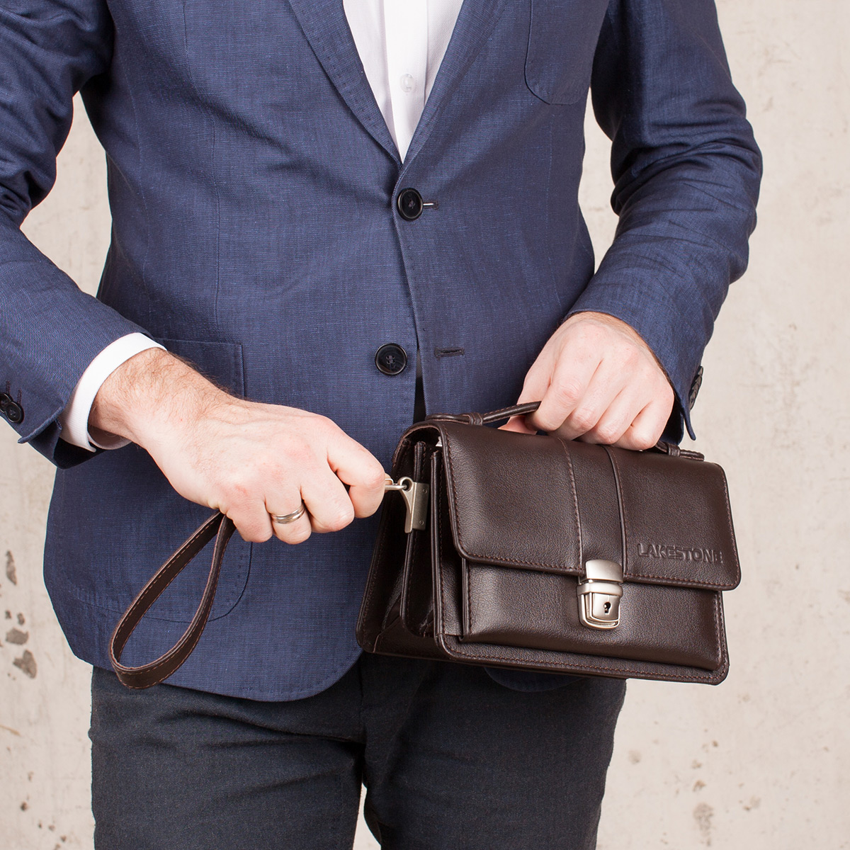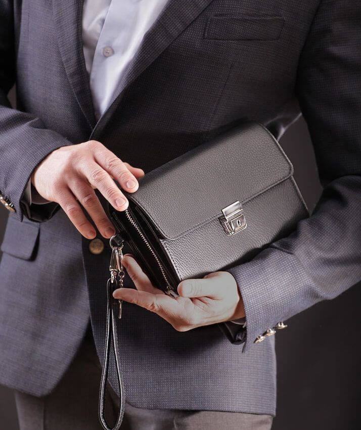 Eine kleine Tasche mit stabilem Boden zum Tragen in der Hand. In solchen Taschen ist es sehr praktisch, kleine Dokumente sowie Telefon, Visitenkartenhalter, Schlüssel und wichtige Schreibwaren zu transportieren. Einige Modelle haben Griffe, aber die meisten Männer tragen sie immer noch unter den Achseln.
