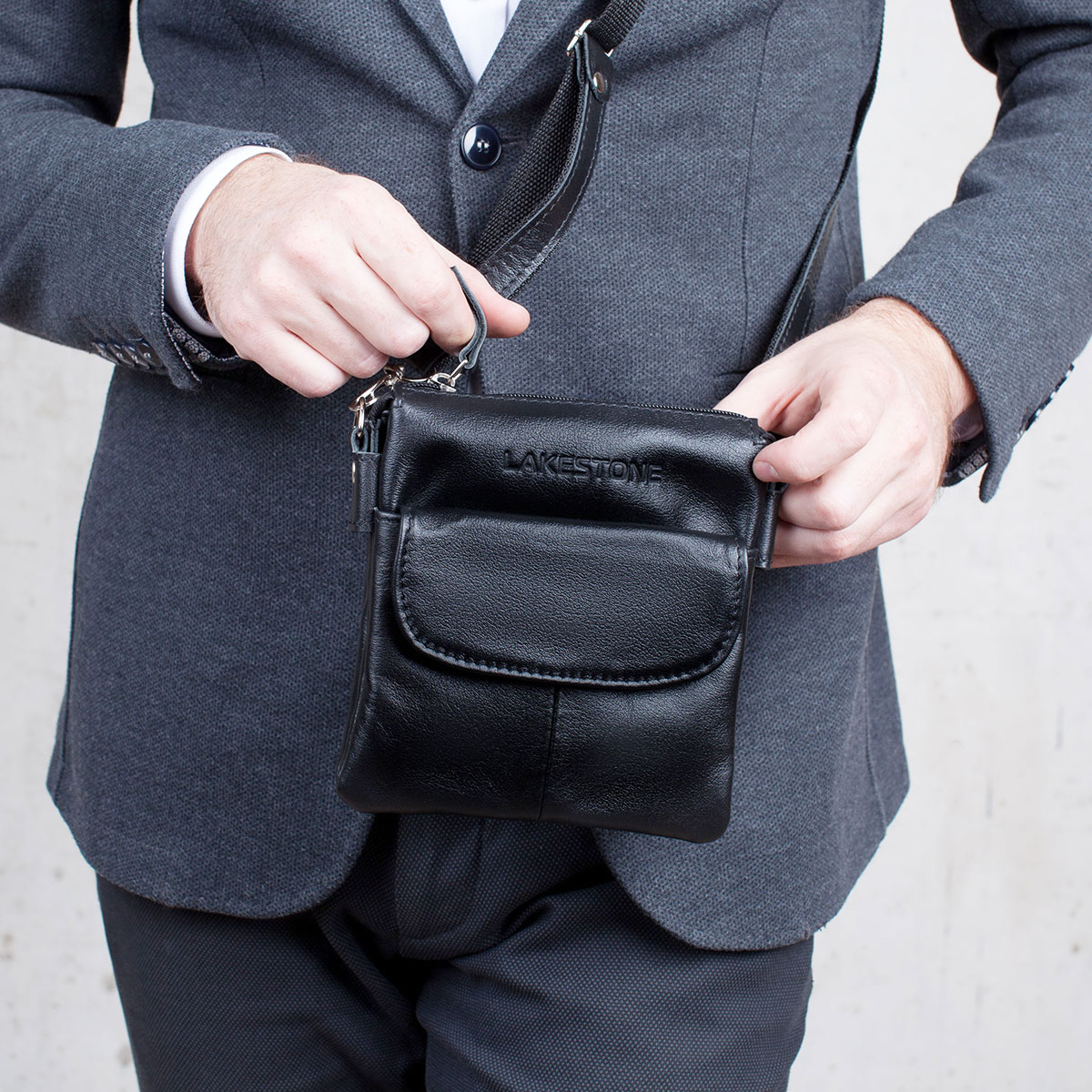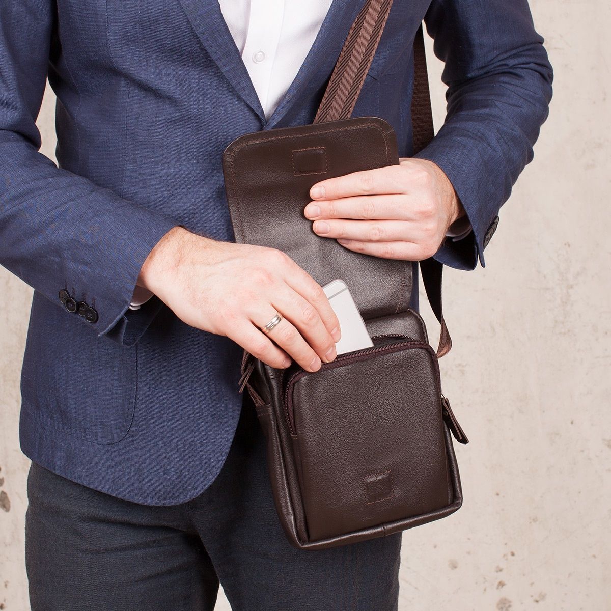 Dieses Modell wird Postbote genannt. Diese Wahl wird normalerweise von Männern getroffen, die einen aktiven Lebensstil bevorzugen. Solche Gegenstände werden an einem Gürtel über der Schulter oder um den Hals getragen, wodurch sie aussehen wie die Taschen, die früher von Briefträgern getragen wurden.