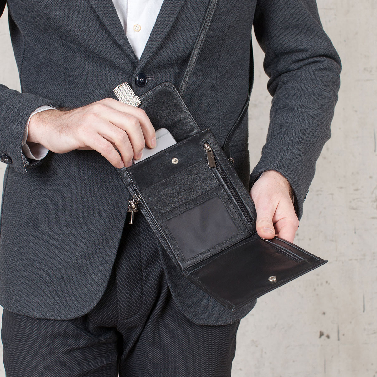 Wenn ein Mann nur einen Reisepass, einen Führerschein und andere persönliche Dokumente mit sich führen muss, können Sie sich auf Modelle beschränken wie: