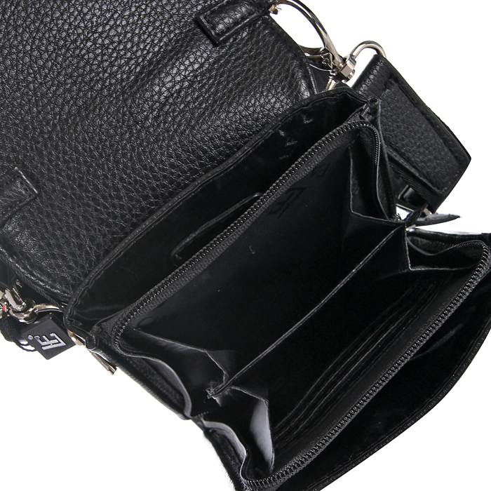 Dokumente und anderer interner Inhalt werden durch eine Klappe, die mit einem Knopf oder einer Schnalle geschlossen wird, sicher geschützt.
