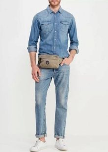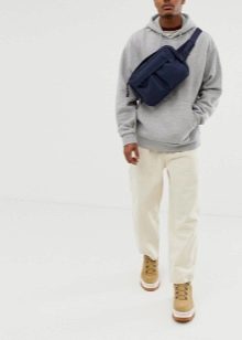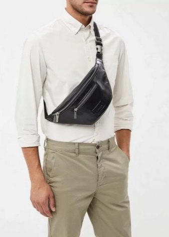 Um einen lässigen Look zu kreieren, sind praktische Leder- und Textilmodelle in Halbmondform optimal, die sowohl am Gürtel als auch an der Schulter getragen werden können. Empfohlene Farben sind neutral (schwarz, grau, beige, braun, weiß). Für junge Männer wird Designern empfohlen, zweifarbige Modelle und Denim-Produkte mit braunen Ledereinsätzen in Betracht zu ziehen.