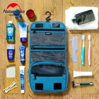 - Veranstalter - ein praktisches Modell, das aus einer großen Anzahl von Fächern besteht. Dieses Zubehör dient nicht nur der Aufbewahrung von Toilettenartikeln und Körperpflegeprodukten, sondern auch von Dokumenten, Bankkarten und Schlüsseln.