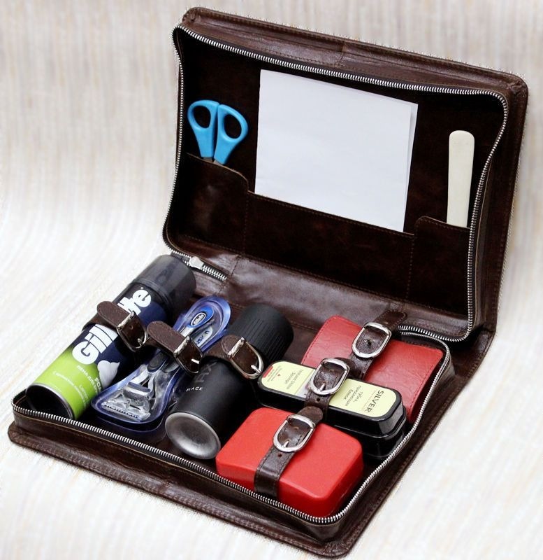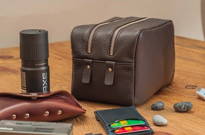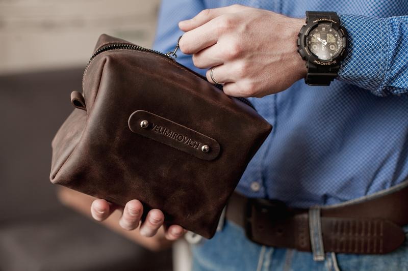 Eine Herren-Reisetasche ist ein Artikel zur Aufbewahrung kleiner Dinge und sieht aus wie eine Damenkosmetiktasche. Dieses Zubehör ist sowohl für den täglichen Gebrauch als auch für die Organisation von Dingen auf langen Geschäftsreisen, Reisen und Reisen gedacht.
