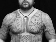 - Slawen. Nach historischen Daten verwendeten die Helden in Russland zum Schutz Stahlkettenhemden, die aus kleinen Gliedern in Form eines langen Hemdes gewebt waren, mit verstärkten Platten an der Basis aus Leder und Fäustlingen aus dem gleichen Material, sie wurden Lamellen genannt . Oft ignorierten die Vorfahren militärische Rüstungen, weil sie unbequem waren. Es war viel schwieriger, darin zu manövrieren: Lamellen hatten ein beträchtliches Gewicht. Slawische Tattoos helfen, heroische Stärke und Macht zu zeigen. Das Bild von nur einem Kettenhemd kann auf eine Person hinweisen, die die Regeln im Austausch für persönliche Freiheit missachtet.