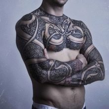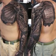 Nachdem Sie ein solches Bild ausgewählt haben, sollten Sie daran denken, dass sein Besitzer eine schöne aufgepumpte Figur haben muss, da sonst das Tattoo in diesem Bereich sehr unrentabel aussieht.