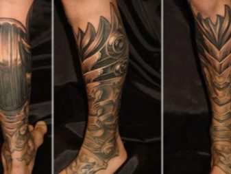 An der unteren Extremität werden ärmelähnliche Kompositionen interessant aussehen. Das in diesem Bereich platzierte Bild stärkt das Selbstbewusstsein. Wenn Sie die Komposition vollständig ausfüllen, wird die Arbeit viel Zeit in Anspruch nehmen. Schmerzen sind in diesem Fall je nach Ort unterschiedlich.