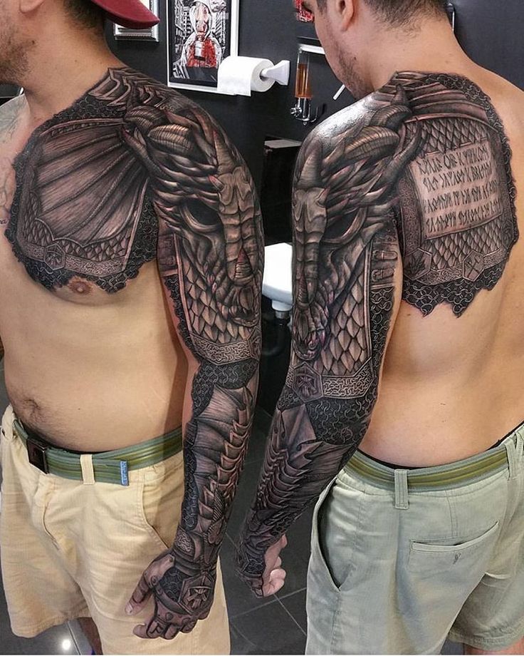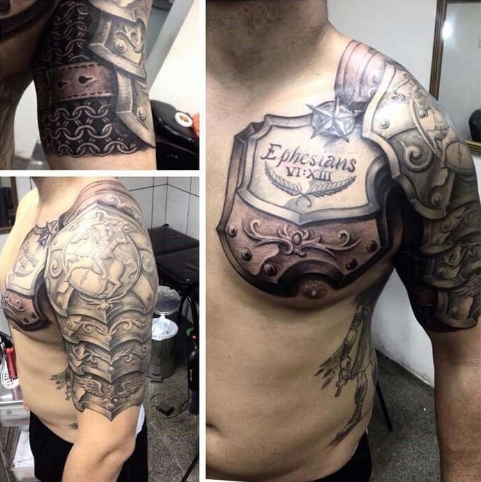 Männer, die sich für ein Rüstungstattoo entscheiden, denken normalerweise strategisch und können Probleme lösen. Oft sind sie rücksichtslos, sie gehen gerne Risiken ein, sie haben einen kämpferischen Griff.