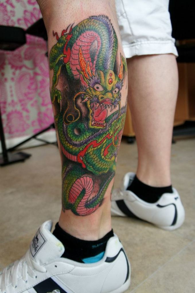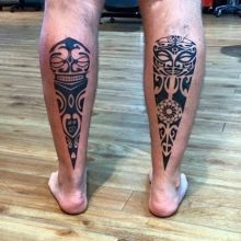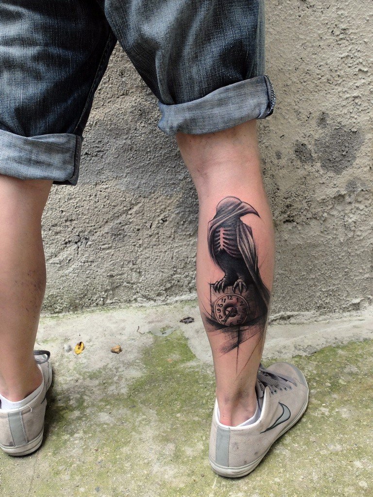 Das Tätowieren der Wadenmuskulatur hat Vor- und Nachteile. Die Vorteile wurden bereits oben erwähnt: geringe Schmerzempfindungen, viele Interpretationen, eine große und gleichmäßige Fläche, die es dem Meister ermöglicht, die gesamte Komposition auszufüllen.