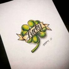 Es wird nicht empfohlen, das Kleeblatt, das drei Blütenblätter hat, aufzutragen. Auf den ersten Blick ist dies ein eher einfaches, sogar freundliches Tattoo, aber ein Merkmal ist hier wichtig. Ein Klee hat 4 Blütenblätter, eine Pflanze mit 3 Blättern ist ein Zeichen für die Zugehörigkeit zu einer gefährlichen irischen kriminellen Gruppe.