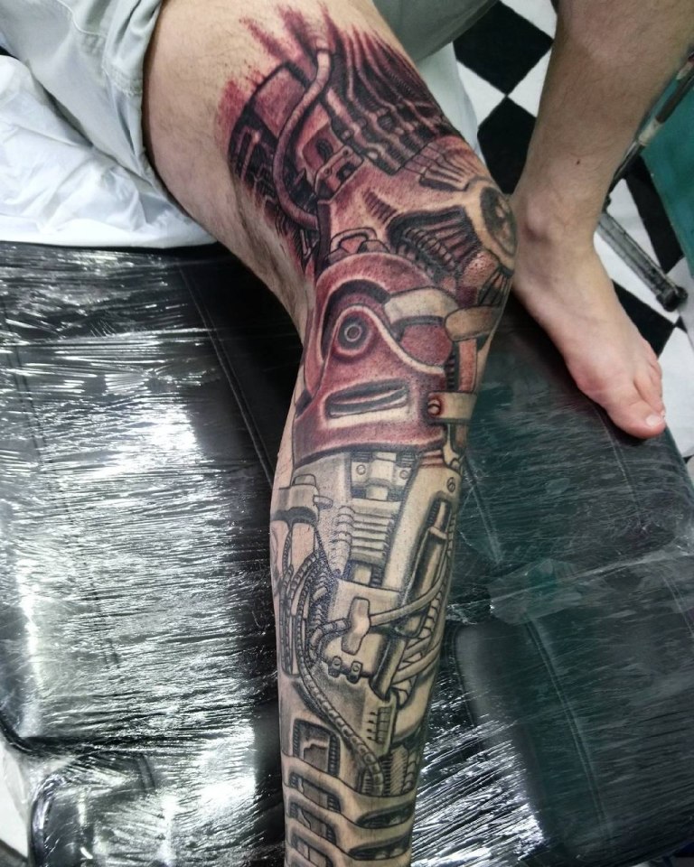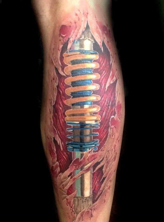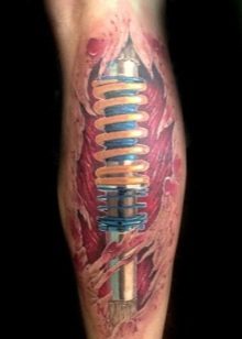 Jede Technik kann mit Sicherheit brutalen Tattoos zugeschrieben werden, zum Beispiel: Autos, Flugzeuge oder Motorräder. Helden, Plots von Computerspielen gehören ebenfalls in diese Kategorie.