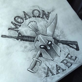 Es gibt viele Skizzen mit unterschiedlichen Kompositionen, die für Männer geeignet sind. Es können sowohl kleine Tattoos als auch volumetrische Tattoos sein. Die Wahl von Größe und Skizze ist rein individuell.