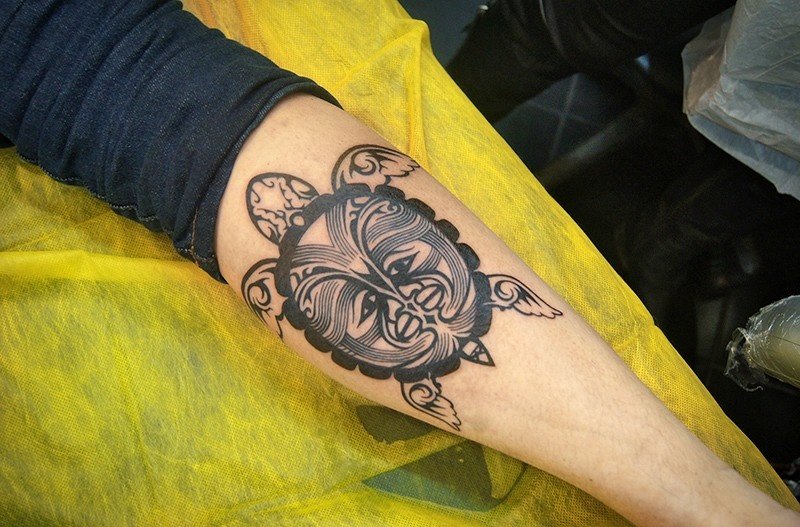 Original-Tattoos in diesem Stil sind auf den Bildern zu sehen.