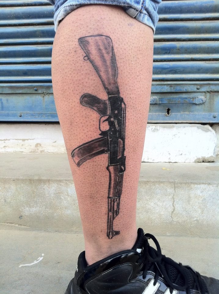 Manche Männer ziehen es vor, ihre Waffen zu stechen. Dazu gehören Sturmgewehre, Säbel, Messer und mehr. Schwere Tätowierungen werden unten dargestellt.