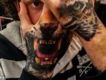 - Raubtier grinsen. Solche Zeichnungen verkörpern den Kampfgeist eines Mannes, sie können aggressive Untertöne tragen.