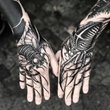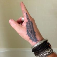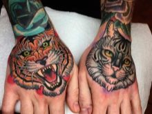 - Schon das Einstechen von Skizzen in die Hände ist äußerst schmerzhaft. Dies ist einer der sensibelsten und anfälligsten Bereiche, daher müssen Sie sich im Voraus auf seine "Dekoration" im Tattoo-Studio vorbereiten.