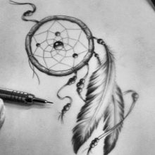 - Traumfänger - eine nicht weniger beliebte Zeichnung, die eine Person vor den Auswirkungen von Versuchungen und unfreundlichen Gedanken hervorragend beschützt;