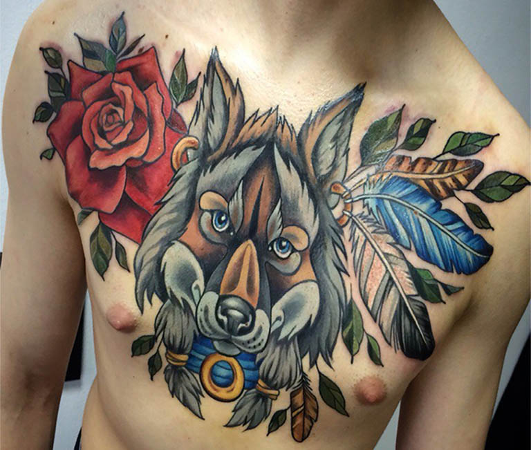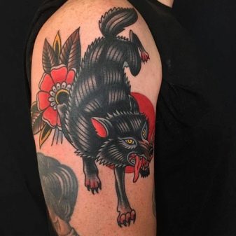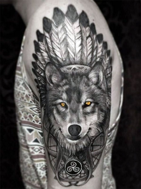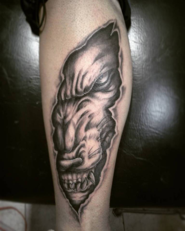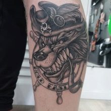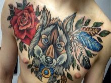 Der Wolf ist ein umstrittener Charakter in Tätowierungen. Ihm werden gute und negative Eigenschaften zugeschrieben. Seine Anwendung auf den männlichen Körper zeugt von Unabhängigkeit.
