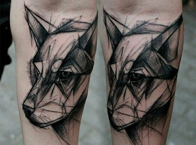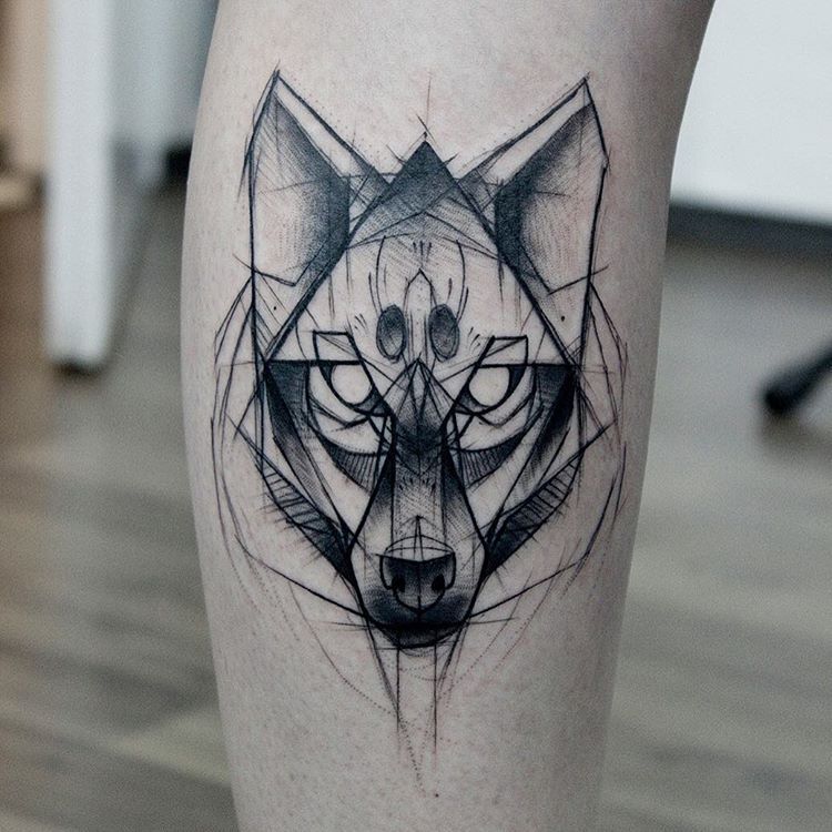 Außerdem, ein Wolf kann auf dem Bein eines Mannes sitzen. Dies ist zum Beispiel eine großartige Tattoo-Platzierung im Sketch-Stil.