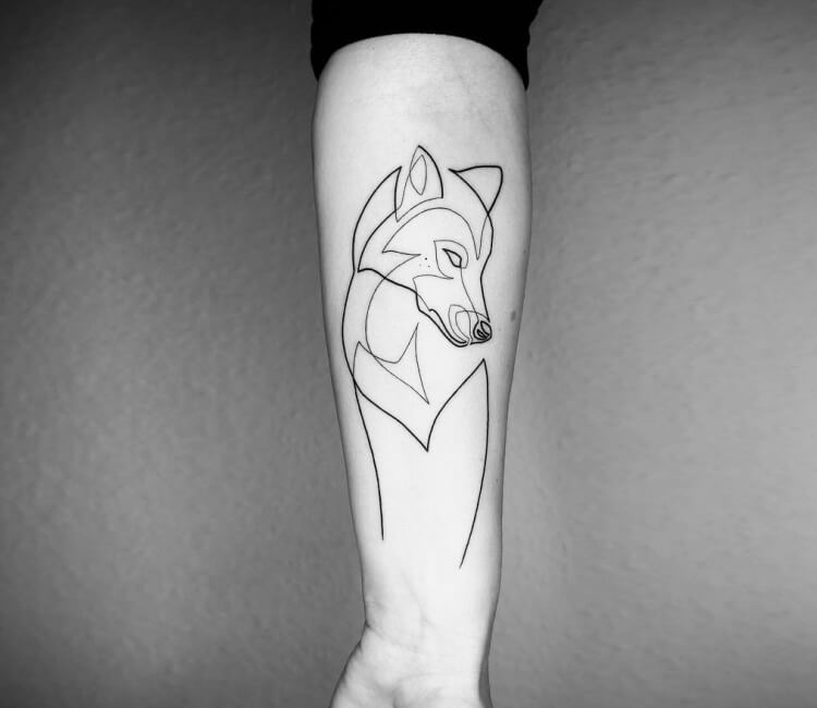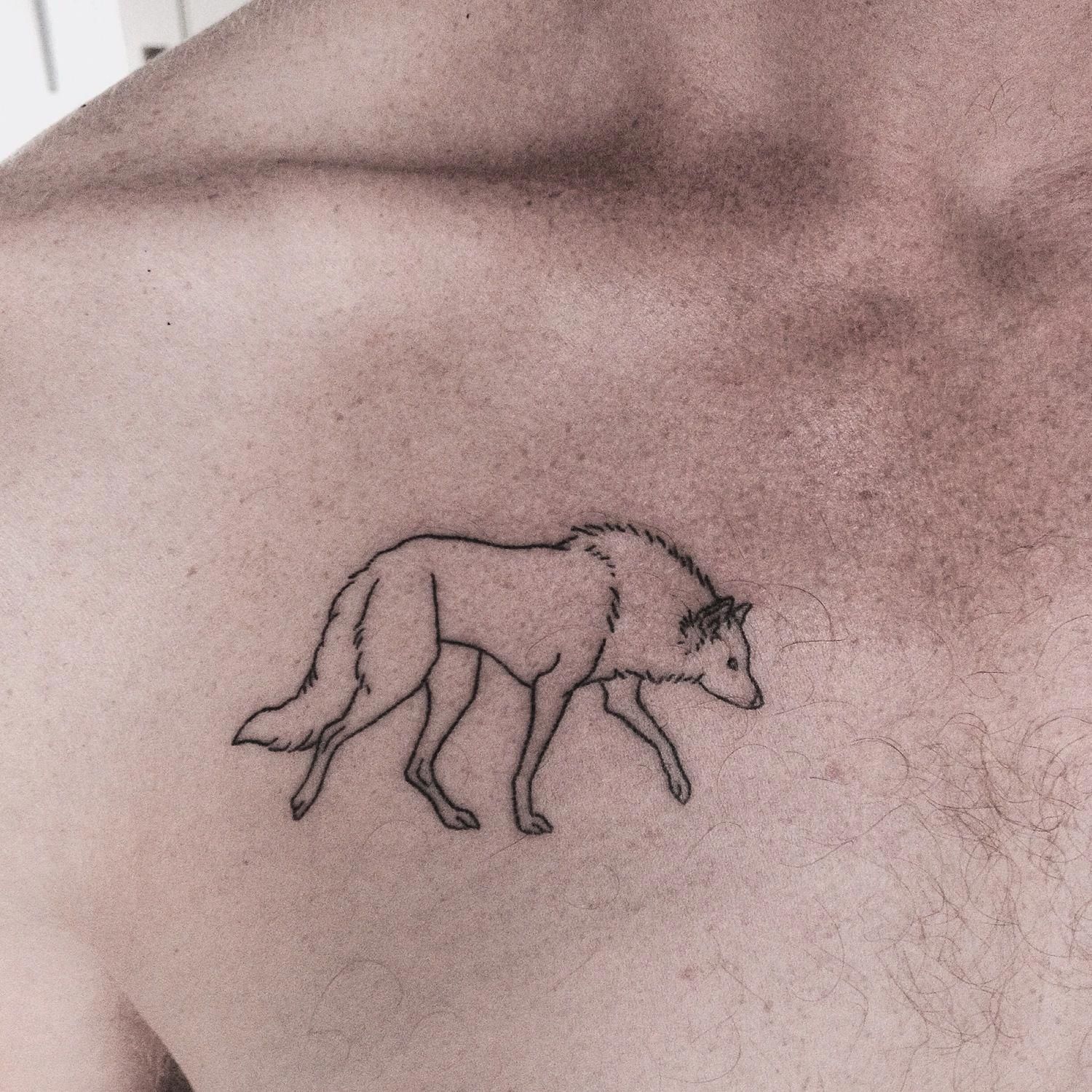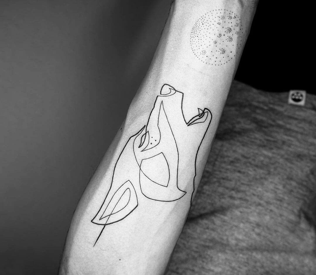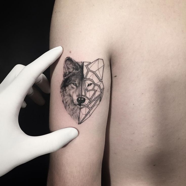 Minimalistische Wolfstattoos für Männer verfolgen nicht das Ziel der Authentizität. Sie sind mit meist schwarzer Tinte gefüllt. Im Gegensatz zu realistischen Bildern sind sie kleiner.