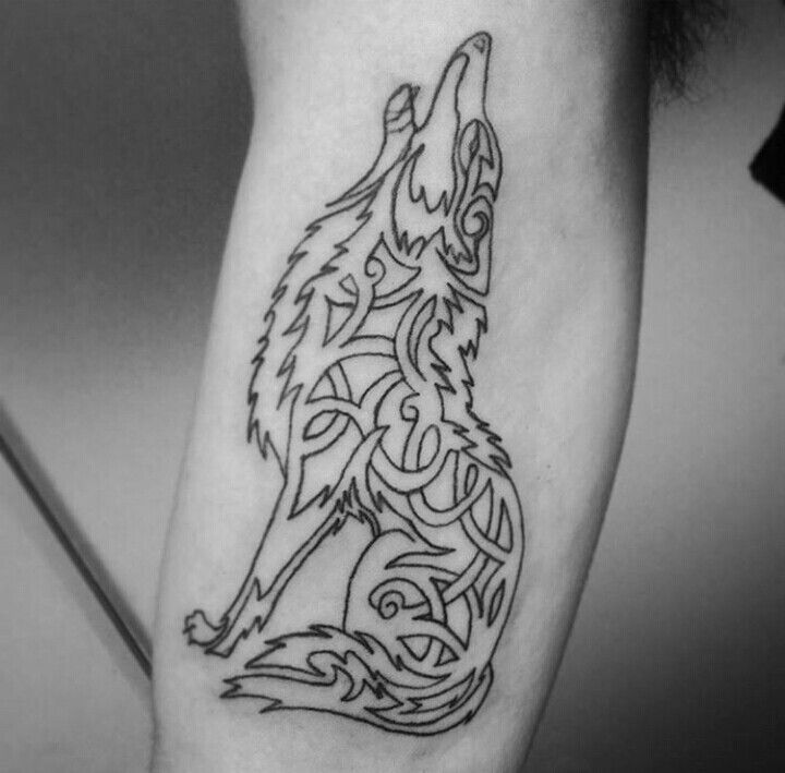 Der keltische Wolf ist unter anderen Techniken ein Favorit. Es wird ausschließlich in schwarzer Farbe aufgetragen. Das Schlüsselelement ist eine Linie, die durch viele Webarten ein Muster erzeugt.