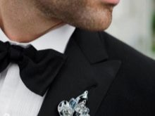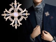 Herrenbroschen dienen als ausgefallene Dekoration für ein Kleid... Solche Accessoires für Herren sollten im Gegensatz zu Damenmodellen klein sein. Bei der Herstellung wird auf eine große Anzahl von dekorativen Steinen und Perlen verzichtet.