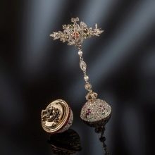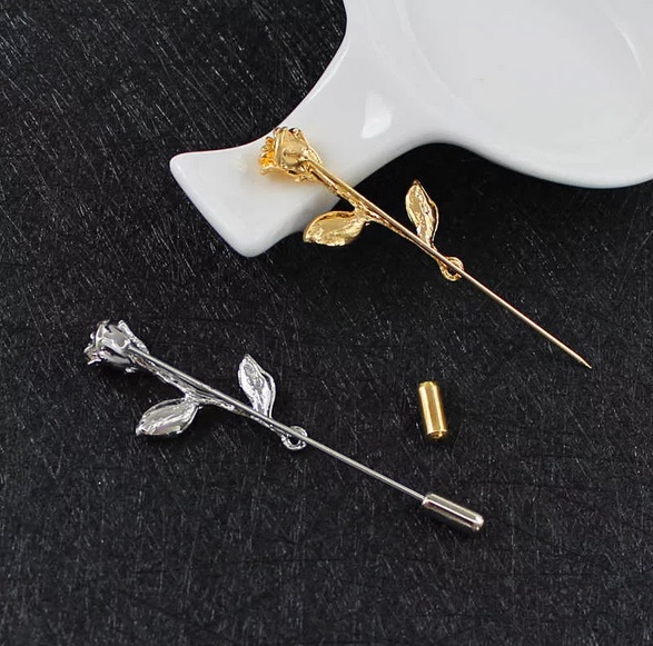 - Edelmetalle... Broschen aus einer solchen Basis sind die teuerste Option. Am häufigsten wird Gelb- oder Weißgold oder Silber verwendet, um Accessoires herzustellen. Dieser Schmuck wird am vorzeigbarsten und solidesten aussehen. Sie sind perfekt für Business-Anzüge. Manchmal sind sie zusätzlich mit einer kleinen Anzahl kleiner einfarbiger Edelsteine verziert. Einige Modelle sind aus Edelmetalllegierungen gefertigt.