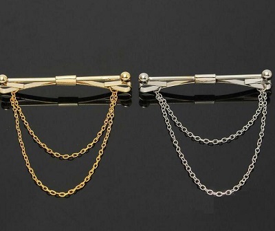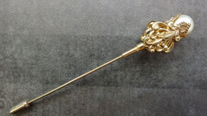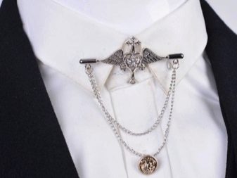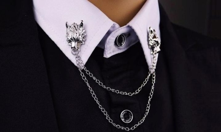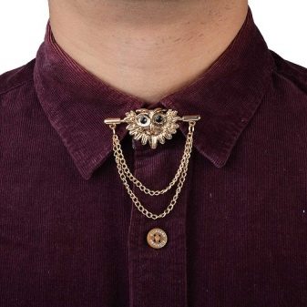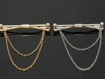 - Haarnadel. Durch sein äußeres Design ähnelt dieser Schmuck einer klassischen Sicherheitsnadel, er durchsticht einfach die Enden des Kragens. Bei ständigem Tragen treten jedoch auffällige hässliche Löcher auf der Kleidung auf.