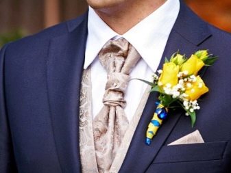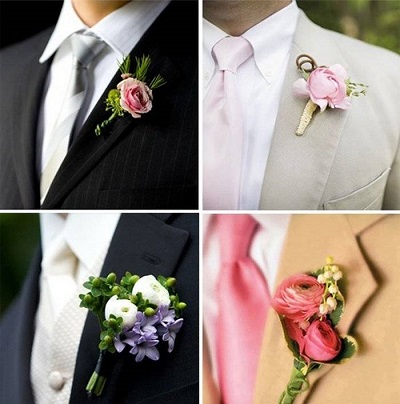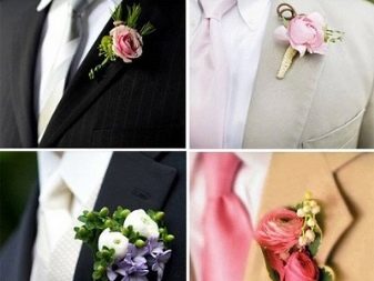 - Textil... Am häufigsten werden kleine Accessoires aus solchen Materialien hergestellt, die Boutonnieres genannt werden und zu bestimmten Anlässen getragen werden. Satin, Seide, Chiffon, Samt werden verwendet, um sie herzustellen. Aus solchen Stoffen werden bunte Ministräuße hergestellt, die an Jacken befestigt werden. Einige Muster sind aus echtem Leder.