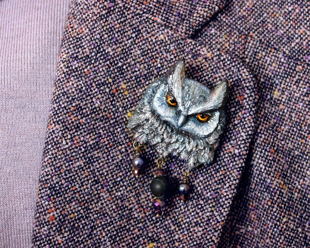 Es ist üblich, eine Brosche mit lakonischer klassischer Zivilkleidung zu tragen... Auf zu hellen Kleidungsstücken mit Pailletten und bunten Prints wird dieses Accessoire unbemerkt bleiben oder sogar das Gesamtbild ruinieren.