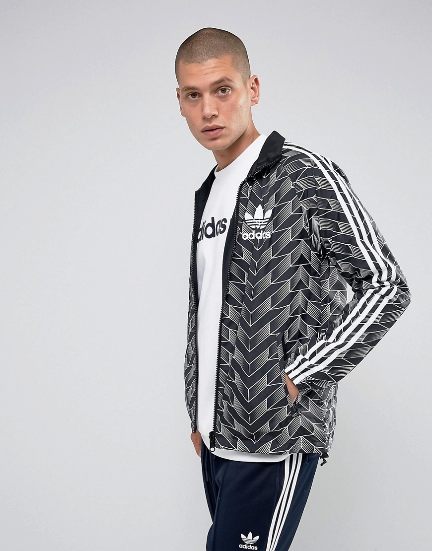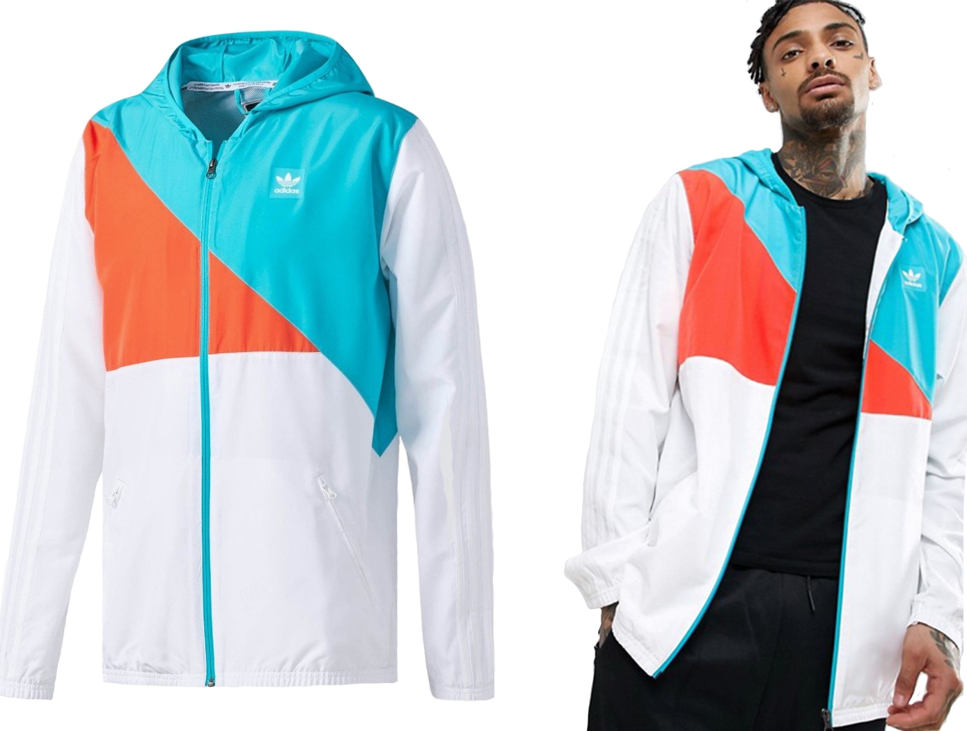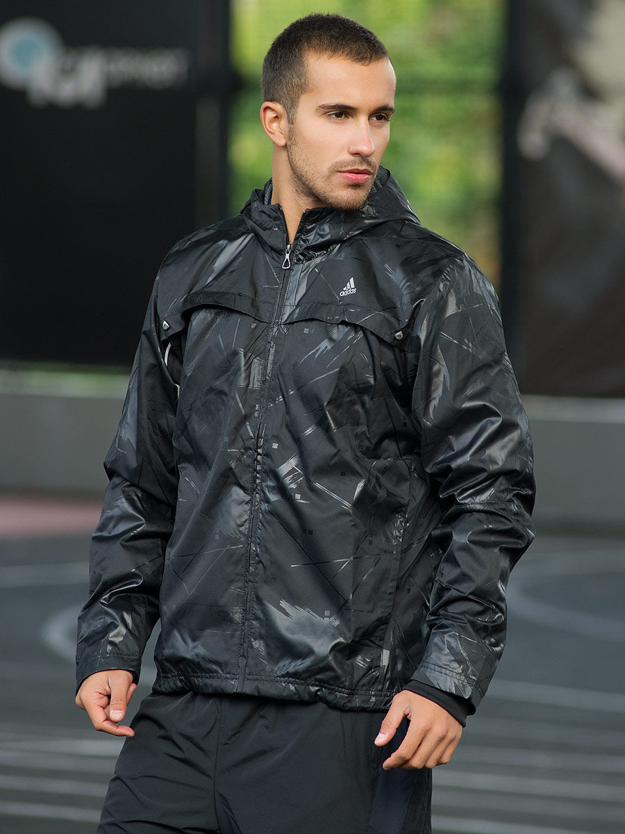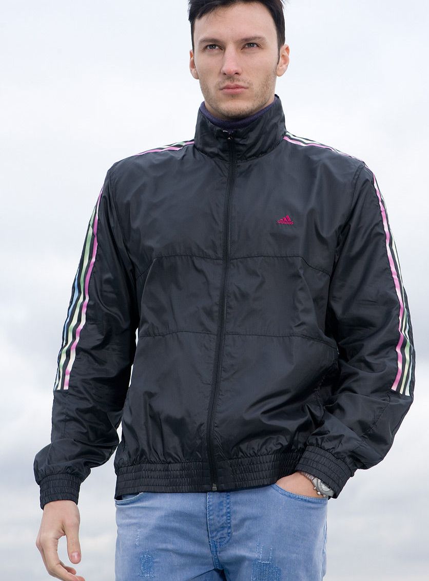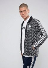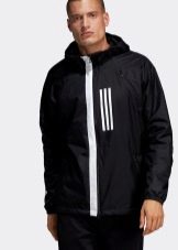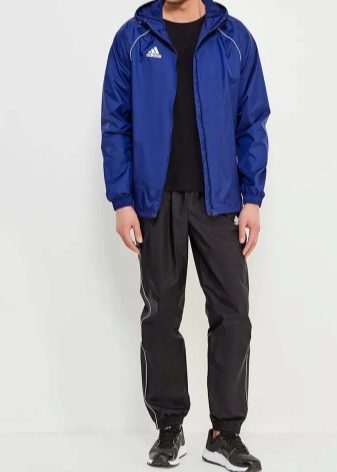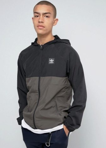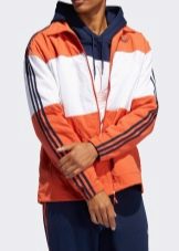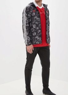 Unter Stadtbedingungen kann der Adidas Sportwindbreaker mit Jogginghose, Jeans, Chino getragen werden. An den Füßen können Turnschuhe, Turnschuhe, Slip-Ons sein.