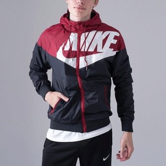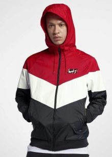 Das Design der urbanen Windjacken mit Kapuze ist vielfältig. Jemand mag strenge Modelle in neutralen Farbtönen (Schwarz, Blau, Grau, Beige, Braun), während jemand helle und schockierende Optionen bevorzugt (hell, zwei- und dreifarbig, mit Logos, Mustern). Einige tragen Sportmarkenjacken mit Jeans und Sneakers. Patrioten mögen Produkte mit der Aufschrift "UdSSR".