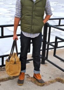 Wählen Sie Schuhe, entscheiden Sie sich für Sneaker, Sneaker oder massive Winterstiefel - all dies wird am harmonischsten mit einer Weste im sportlichen Stil kombiniert.