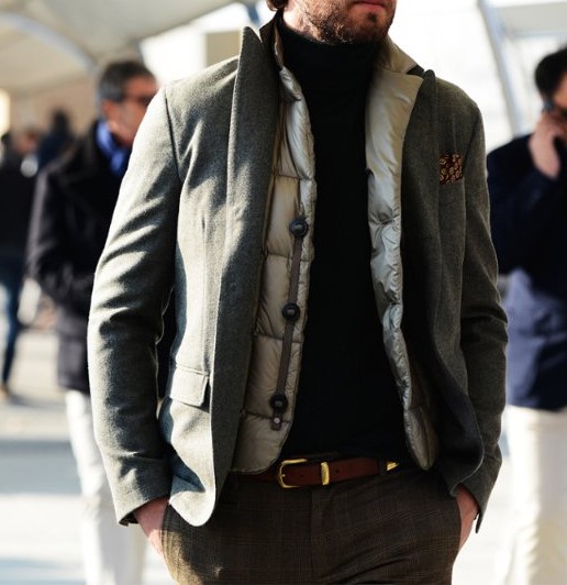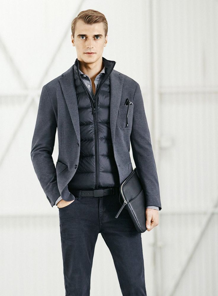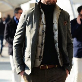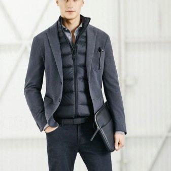 Darunter können Sie alle Arten von Hemden (mit beliebiger Ärmellänge), Pullover, Sweatshirts und Hoodies tragen. Jeans ist in diesem Fall auch die erfolgreichste Option unter allen Hosenarten. Zu beachten ist natürlich, dass Sie keine Wintersportweste mit tragen sollten – das sind Business-Anzüge, klassische Hemden, Hosen und Schuhe. Die winterliche Puffärmellose Jacke wird nur mit Sachen im lässigen Stil kombiniert, aber in diesem Fall ist es besser, die "Klassiker" zu vergessen.