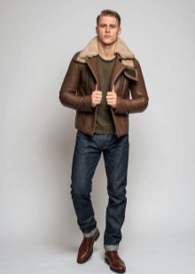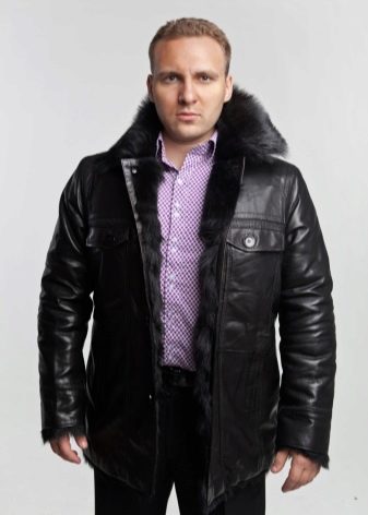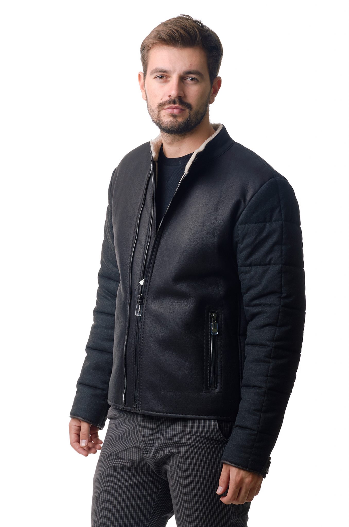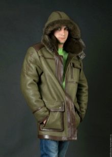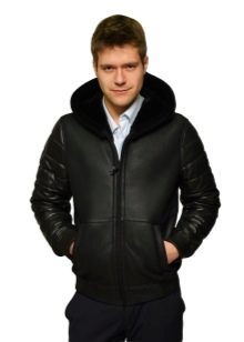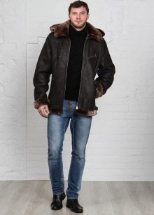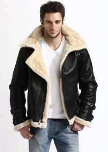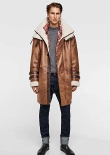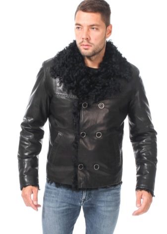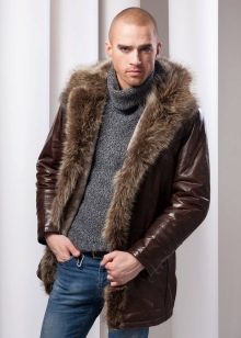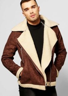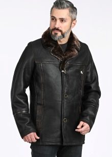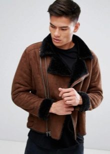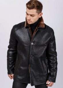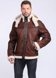 Eine Besonderheit kombinierter Schaffellmäntel ist die lakonische Kombination mehrerer Materialarten. Die häufigste und interessanteste Option ist eine Kombination aus echtem Leder und Wildleder oder Leder und Fell. Die kombinierte Vielfalt an Schaffellmänteln hat eine verkürzte Größe, die perfekt zu schlanken männlichen Figuren passt.