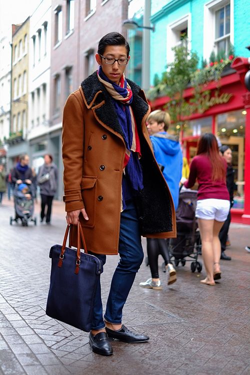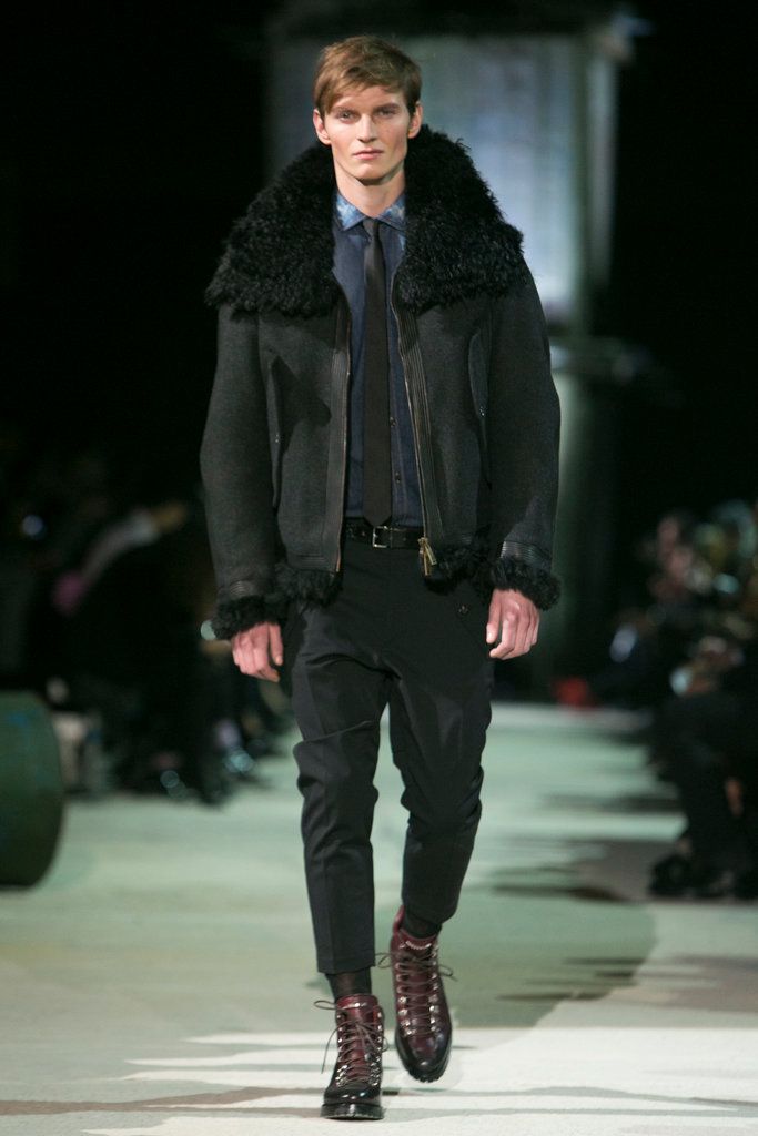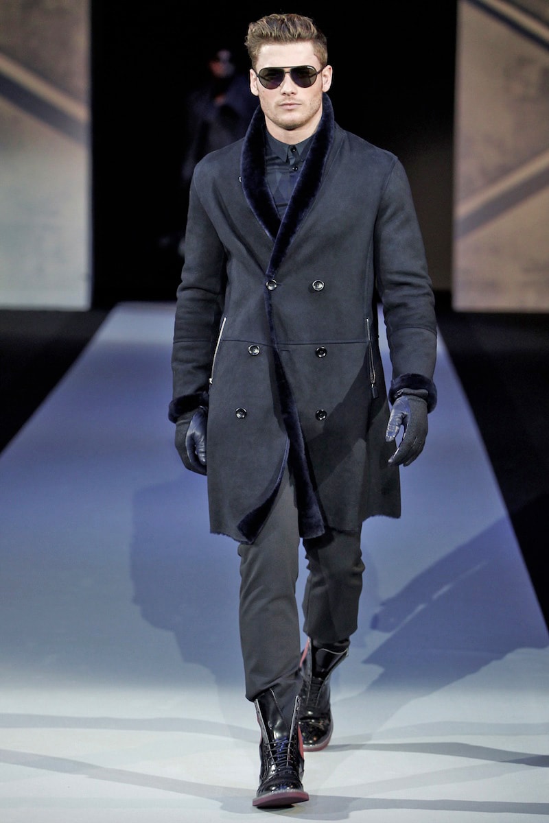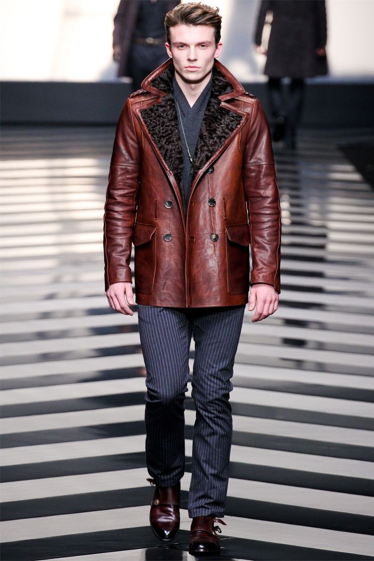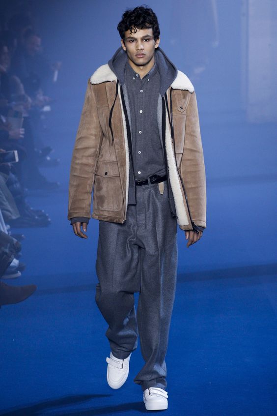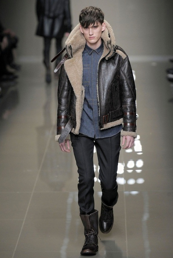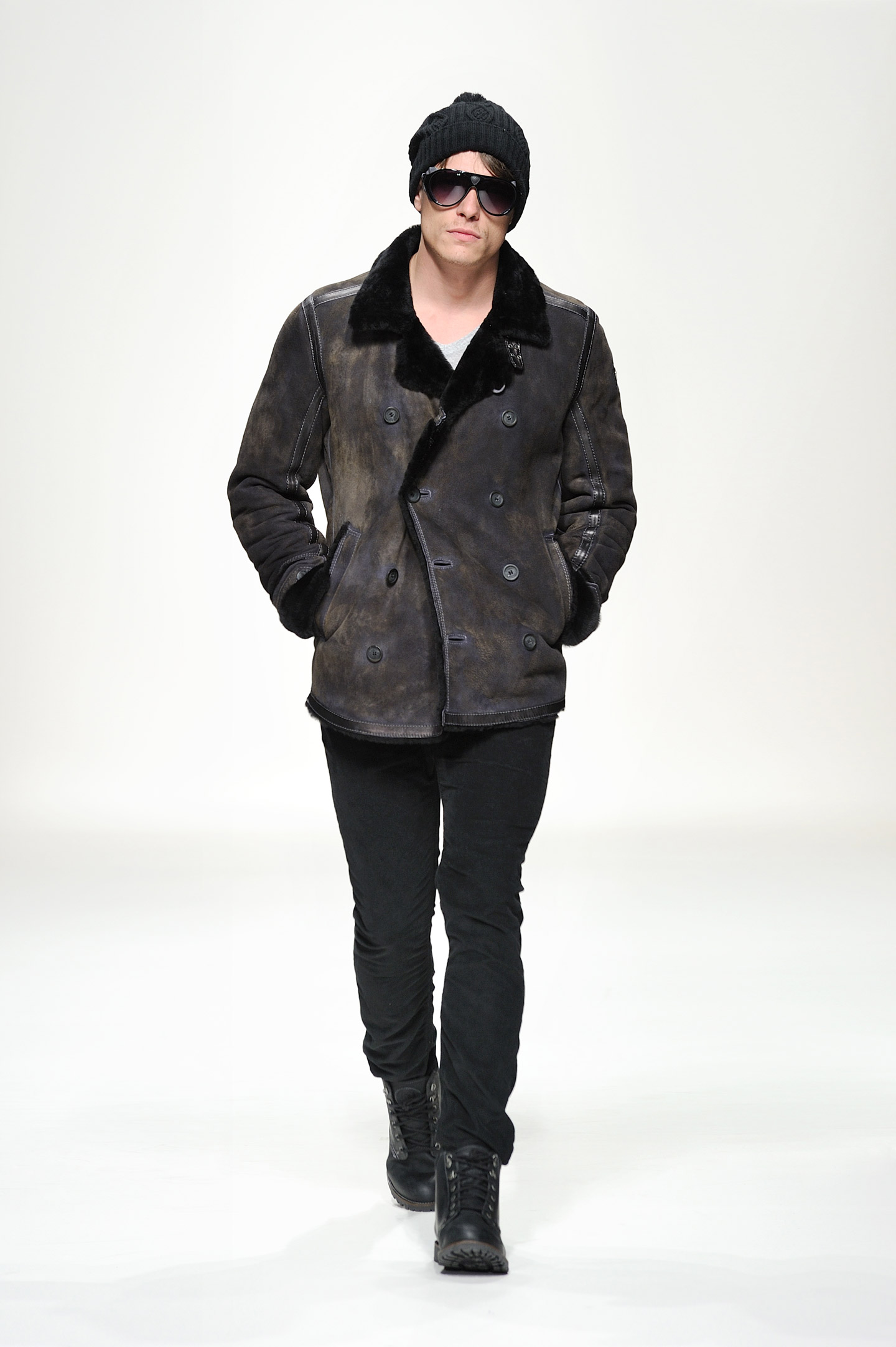 - Dabei kommen die Individualität des Mannes und seine Ausstrahlung deutlich zum Ausdruck. Ein Leder-Lammfellmantel mit schwarzem Fell unterstreicht den klassischen Stil perfekt. Das Hemd ist gelungen auf den Ton der Hose abgestimmt, die dem Übergang vom dunklen Leder des Lammfellmantels zur Stahlfarbe der Hose am ehesten entspricht.