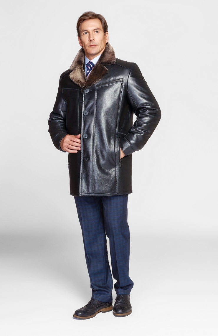 - Übrigens, bei der Auswahl eines geeigneten Stils und Modells eines Schaffellmantels, Übergewichtige und große Männer, sollten Sie auf lange Modelle in großen Größen (von 56 bis 66-68) mit vertikalen Streifen achten. Dank dieses Stils ist es möglich, den Körperbau visuell zu korrigieren.Aber für Besitzer von schmalen Schultern wird Designern empfohlen, sich auf verkürzte und taillierte Modelle zu konzentrieren.