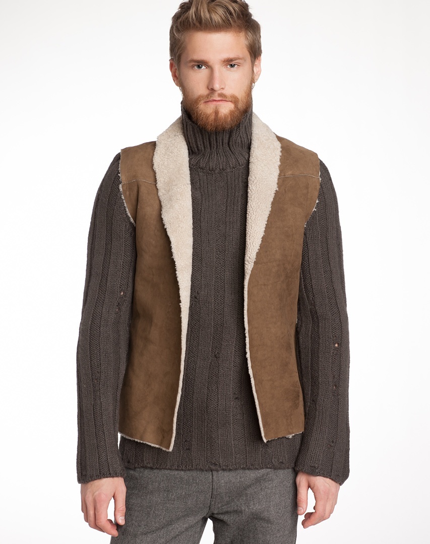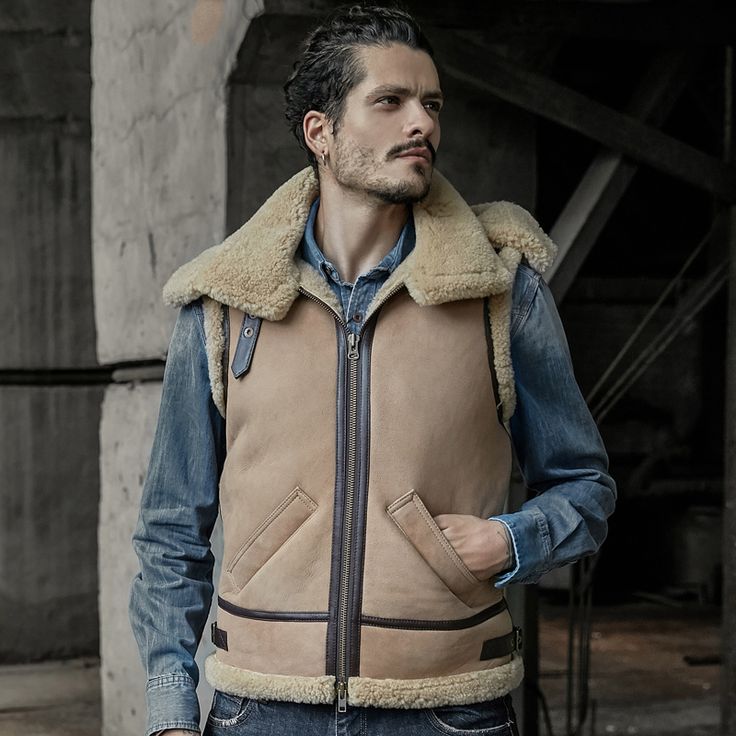 Ideale Winteroberbekleidung für Männer, die die meiste Zeit im Auto verbringen. Es ist äußerst wichtig, dass sie sich hinter dem Steuer sitzen und sich gemütlich und bequem fühlen, und die Einfachheit des Stils behindert die Bewegungen nicht. Lammfellmantel wird außerhalb der Saison getragen. Je nach Stil kann die ärmellose Jacke einen Pelzkragen, Pelzfutter und sogar mehrere Taschen haben. Dieses Winterkleidungsstück ist perfekt für lässige Jeans, Pullover und Rollkragenpullover.