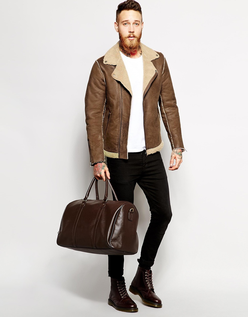 Neben dem Hauptvorteil von Schaffellmänteln schätzen Männer die Möglichkeit, für jedes Modell das passende Zubehör auszuwählen, zum Beispiel Taschen, Mützen, Schals, Handschuhe und sogar Schuhe.