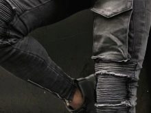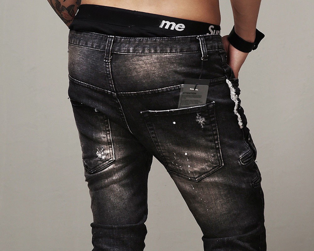 Les modèles Shabby appartiennent à la catégorie des articles à coupe basse conçus pour un usage quotidien. Pour le travail de bureau, cette option ne convient pas. La plupart des jeunes hommes achètent une telle chose pour aller à une réunion avec une fille., car on pense que le beau sexe aime les gars imprudents et brutaux. Ce sont ces pantalons vieillis qui peuvent souligner le style et la créativité de la pensée.