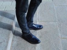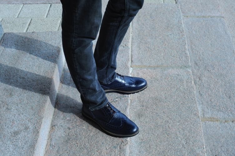 Les chaussures doivent être noires ou marron foncé. La meilleure option est une paire classique en daim ou en cuir véritable. Les bottes laquées ne fonctionneront pas avec de tels pantalons.