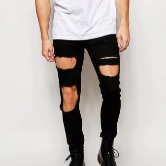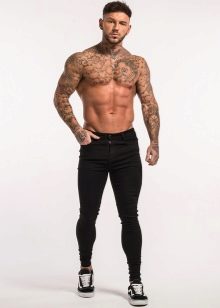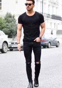 À l'heure actuelle, il existe de nombreuses variantes de pantalons en jean noirs pour hommes, qui font partie des tendances. Une partie importante des jeunes acquièrent maigre pour eux-mêmes. Ce sont des jeans skinny.