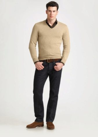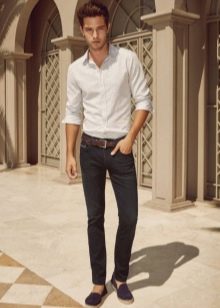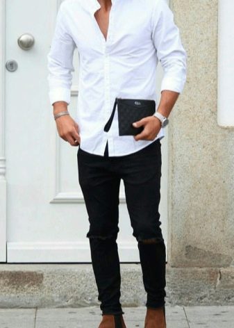 Pour ce look, il est préférable de choisir un jean droit noir qui sera associé à une chemise légère. Pour un tel arc, une veste bleue, grise ou beige convient. Une chemise blanche ajoutera une sévérité supplémentaire, il est donc préférable de la refuser.