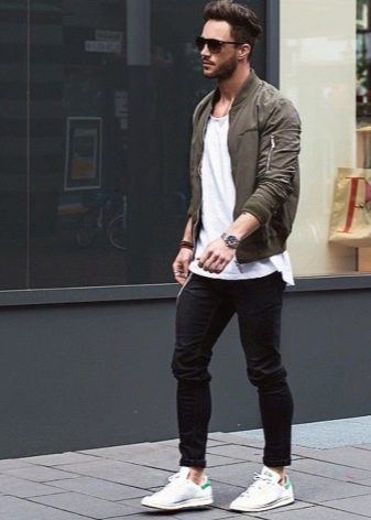 Un pantalon en jean avec des poignets est original avec un sweat-shirt de couleur vive. Vous pouvez porter un bomber tricoté dessus. Il est préférable d'utiliser des baskets blanches comme chaussures. En hiver, la veste bomber peut être remplacée par une doudoune classique ou une veste de ski.