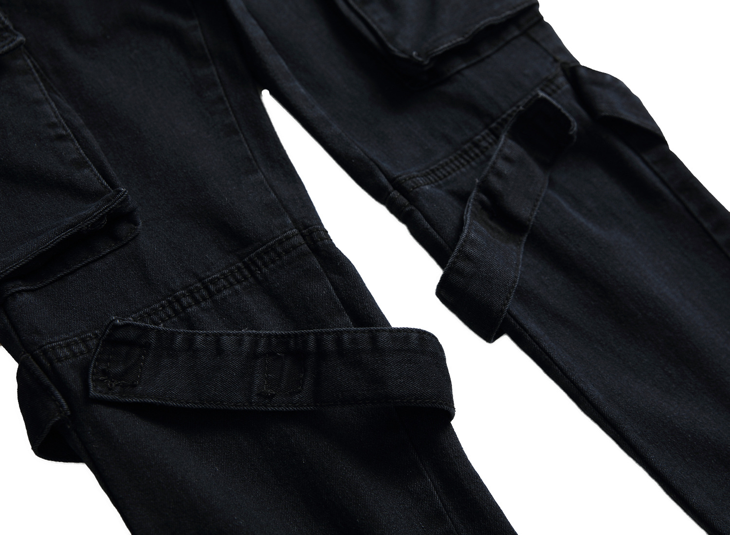 Ces jeans sont généralement dotés de nombreux détails décoratifs. Les créateurs de mode leur fournissent des poches plaquées, des sangles ou des chaînes. Il a l'air très élégant et moderne.