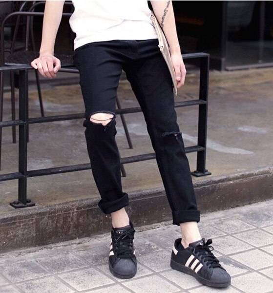 Un jean skinny noir associé à des éléments de décoration discrets a fière allure. Cela comprend les petites écorchures, les coupures. Si vous abordez la sélection de l'image avec toute la responsabilité, vous pouvez alors avoir l'air très à la mode et attirer l'opinion des autres.