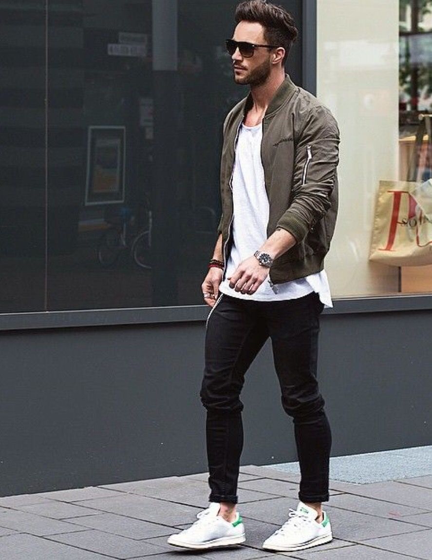 Pour créer un look sportif, les hommes achètent le plus souvent des jeans à revers. Ils vont bien avec un sweat-shirt, un sweat à capuche ou un sweat-shirt. Vous pouvez également les associer à une manche longue ou à un t-shirt.