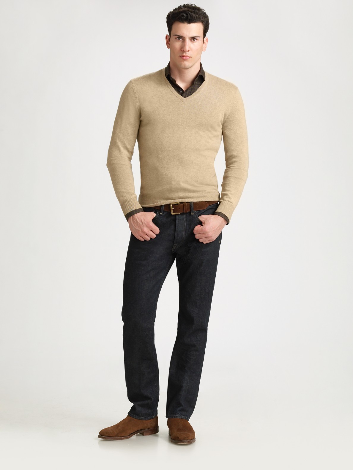 Le meilleur choix pour ce look est d'associer un pantalon en jean noir à un pull à col en V. Il est préférable de choisir une palette de couleurs chaudes. La meilleure option est la couleur du café avec des nuances de lait ou de brun foncé. Assortis ta tenue avec une paire de des bottines en daim marron pour une touche de sophistication.