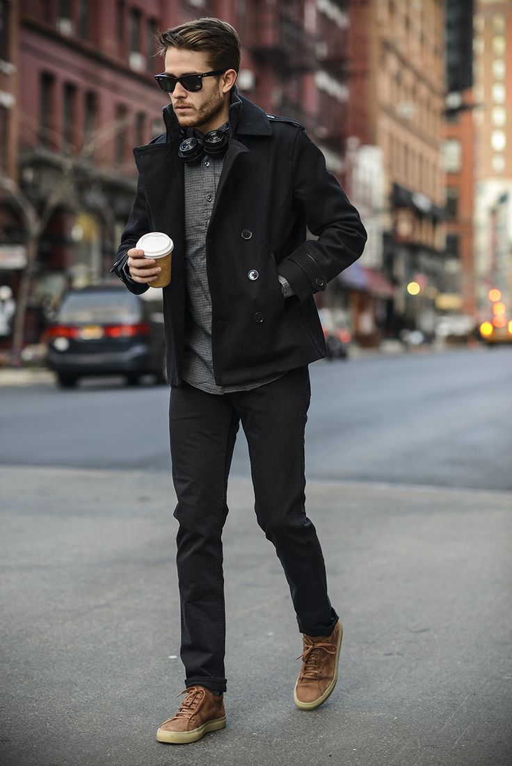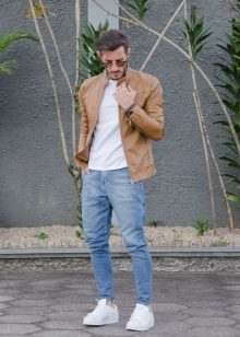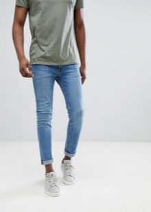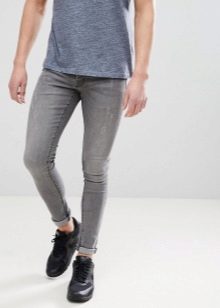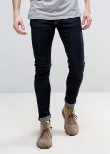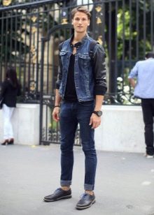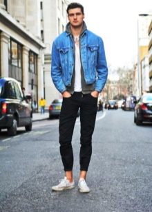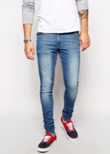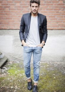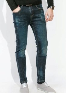 Les fashionistas modernes ne peuvent tout simplement pas se passer de jeans slim, qui ne leur vont pas, mais qui se rétrécissent en même temps vers le bas. Les hommes ont craqué pour ce modèle pour sa fonction amincissante. Dans le même temps, les nœuds à la mode comprennent une combinaison de tels pantalons avec des vestes, des manteaux, des chemises et même des cardigans. Par exemple, vous pouvez obtenir un look confortable et décontracté en complétant un jean foncé avec un sweat à capuche noir, des baskets blanches et un long manteau de couleur claire.